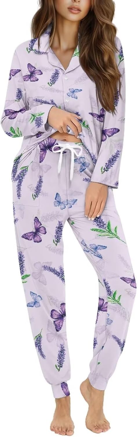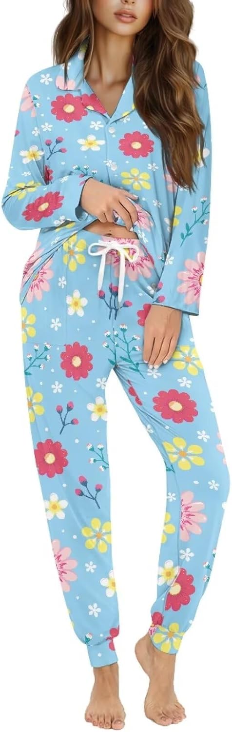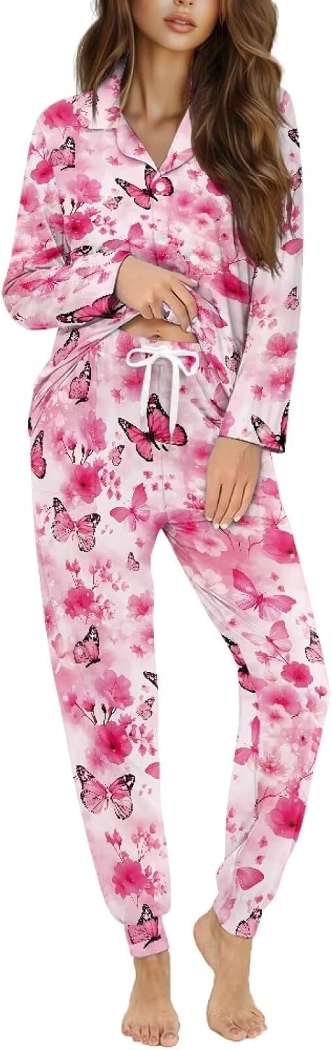 Oamsistay Women's Fashion Pajama Sets Short Sleeve Shirt S-2XL Floral Pajamas Set Soft PJ Loungewear Sleepwear Casual Printed Loungewear This pajama set is both practical and stylish with its button and drawstring design. This set is the ideal choice for warm evenings, lazy weekends, or relaxing days. With breathable fabrics, a chic aesthetic, and thoughtful details, it redefines casual loungewear. Sizes: Bust*Waist*Hips*Length S: 35'' * 25.2'' * 40.6'' * 41.7'' M: 37.9'' * 26'' * 42.9'' * 41.7'' L: 40.9'' * 28.7'' * 45.3'' * 42.1'' X-L: 44'' * 31.1'' * 47.6'' * 42.5'' XX-L: 45'' * 32.3'' * 30.4'' * 42.9'' Packags: Tops*1 & Long Pants *1 Features: Multi Occasions to Wear: Sleeping, Leisure, Home Wear, Dating, Street, Daily Wear, Walking and Walking the Dog and Vacation etc. Fashion Printed: The prints on the pajamas set are mainly daily themes such as florals, butterflies, hummingbirds, flowers, leaves, dragonflies, cats, dogs, etc.