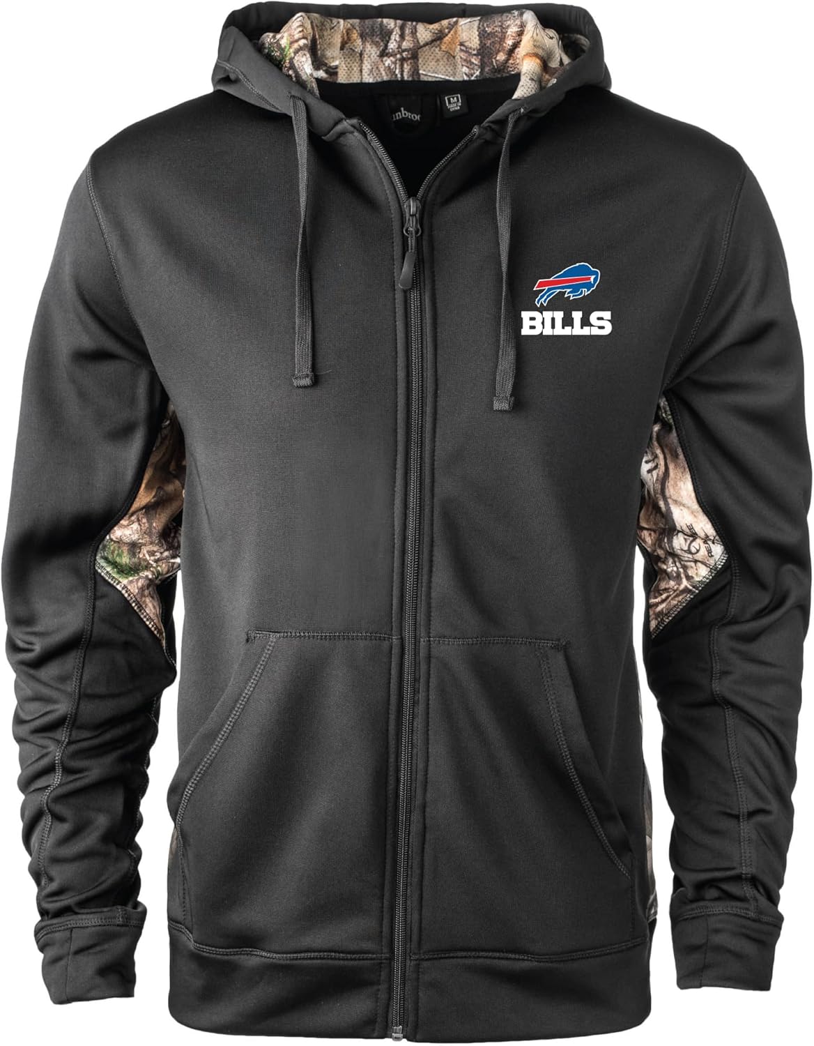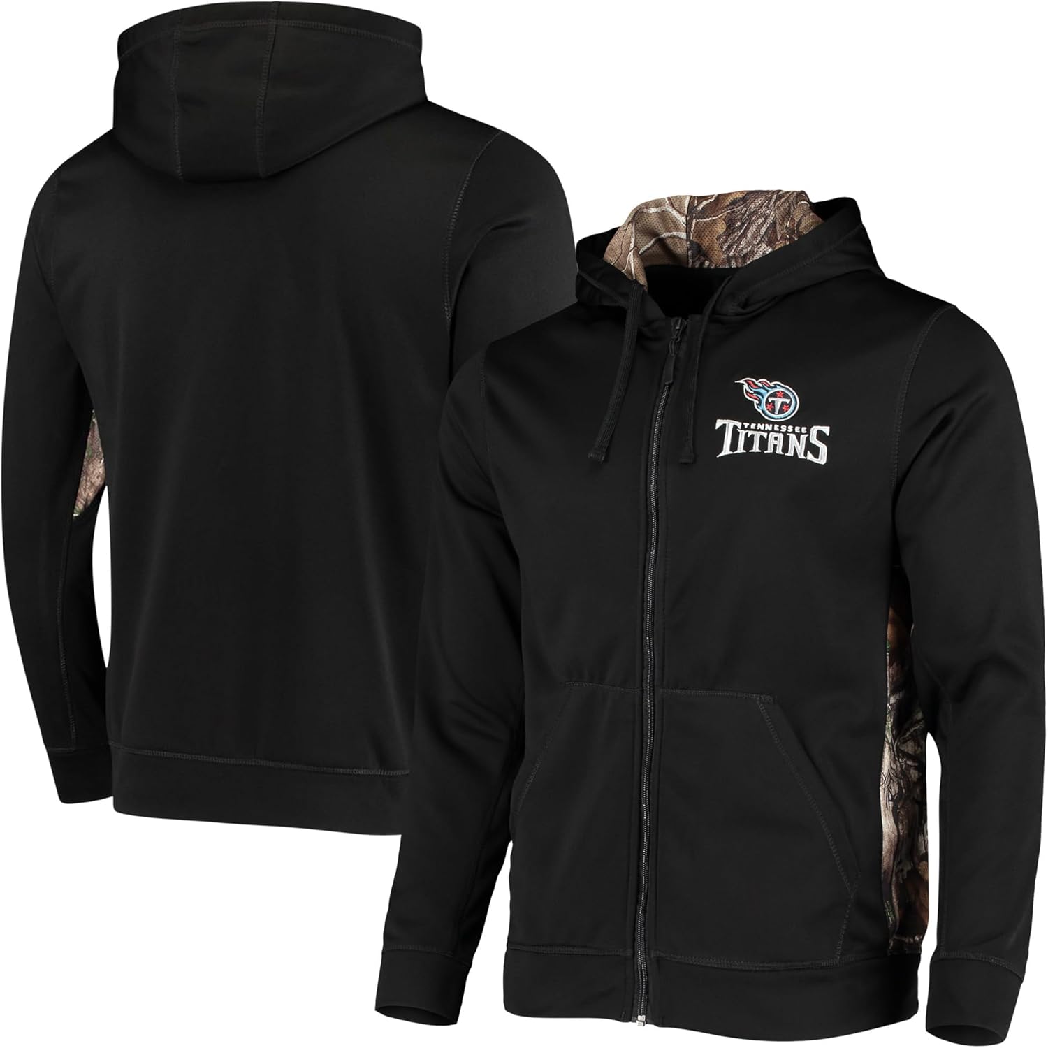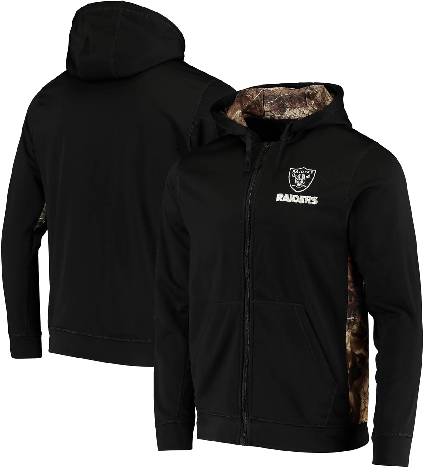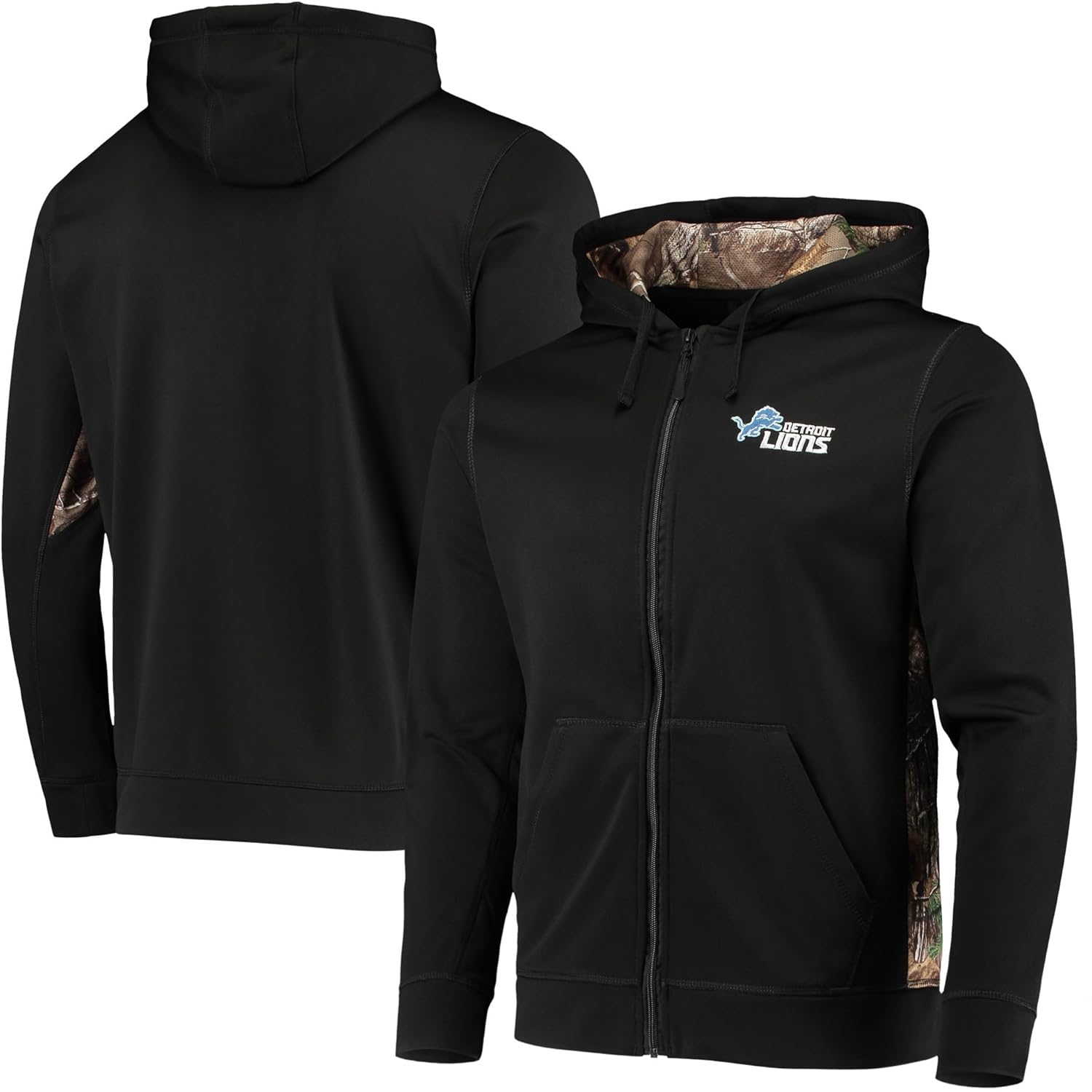 Sharp looking moisture wicking fleece full zip Hooded sweatshirt featuring Realtree Xtra camo accents with a soft brushed interior and warm hand pockets. Show your team spirit with your favorite NFL team logo embroidered on left chest.