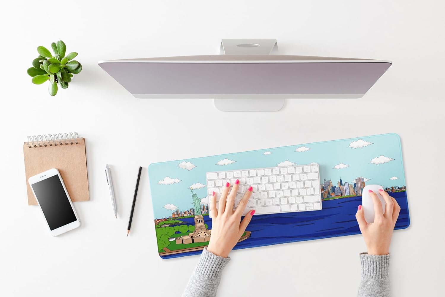 Bring a touch of New York City to your workspace with this scenic mouse pad featuring the NYC skyline, Brooklyn Bridge, and Jane’s Carousel viewed from DUMBO and Brooklyn Bridge Park. Set along the East River and New York Harbor, this design blends urban charm with waterfront beauty, perfect for fans of iconic cityscapes. The smooth surface ensures precise mouse control, while the non-slip rubber base and stitched edges provide durability for everyday use. Ideal for home, office, or dorm setups.