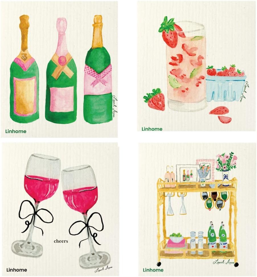 Bring fresh-cut garden charm to everyday clean-ups with the Linhome Garden Collection Swedish Dishcloths. This set features five floral favorites—Pink Peony, Blue Morning Glory, Pink Carnation, Watering Plants, and Trio Topiary—with original artwork by local artist Liesel Anne. Crafted from German-made 70% cellulose / 30% cotton sponge cloth, each piece is ultra-absorbent, streak-free on stone, stainless, and glass, and quick-drying to help prevent odors. One cloth replaces about 15 rolls of paper towels, making it a low-waste, budget-friendly swap you can wash and reuse for 6–9 months. Safe for delicate surfaces; refresh in the washing machine or top-rack dishwasher. A gift-ready pick for kitchens, garden lovers, housewarmings, and spring displays.