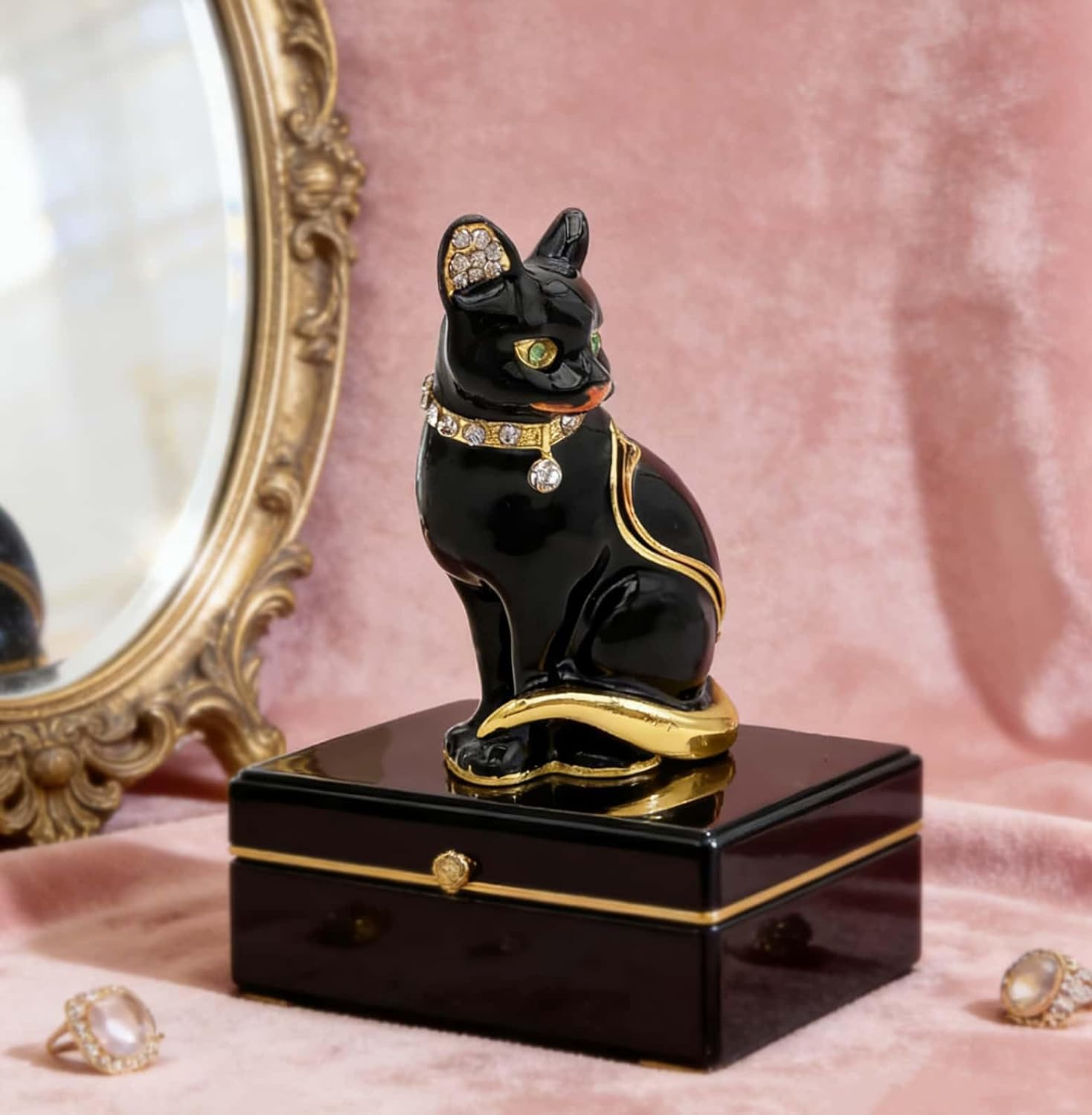 JWT Astyle lovely black cat figurines staute trinket boxes hinged ,black cat memorial gifts! small cat jewelry box decorative box made by premium quality alloy materials with high quality crystals Home Decor Crafts. The cat design knick knack box is simple yet artistic, making it a charming decoration for your dressing table or vanity.Shimmering with colored enamels and hand-set crystal stones, It is beautiful in any setting. A special, amusing gift. An elegant way to store rings, neclaces, earrings, small jewelry, keepsakes.It is great home gifts!Black cat decor for cat lovers!This elegant little jewelry trinket box joyeros is adorable ,beautiful and special, amusing gift. Great for home decoration ,wonderful present for anniversaries, birthday, holidays,Mother's day, Thanksgiving Day,Valentine's day,Christmas ,Xmas,friends ,girls or any other gift giving occasions,great cat gift ideas.cat gifts for cat lovers.This black cat classic jewelry box is a valuable art collection. It will bring you endless appreciation and use pleasure, and make your small trinkets and jewelry more beautiful and organized. By purchasing it, you will get a high-quality, practical, and beautiful TRINKET BOX,it is perfect for a shelf display.Jewelry for women